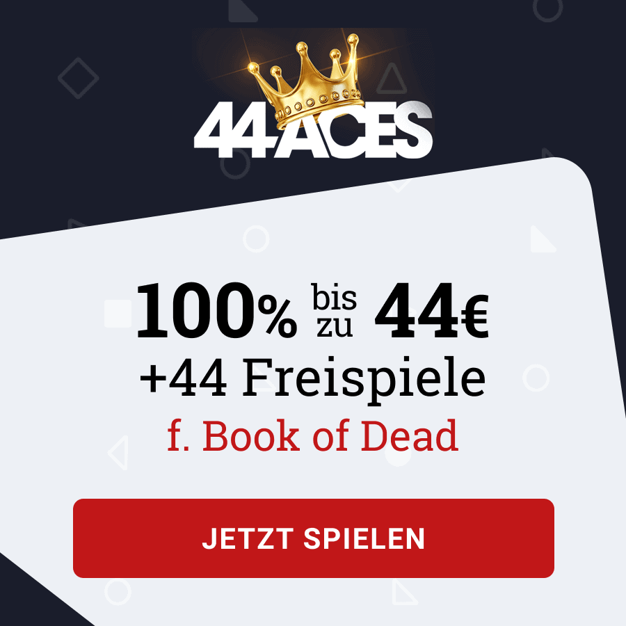 - Willkommensbonus bei 44Aces | 100% bis zu 44€ + 44 Freispiele