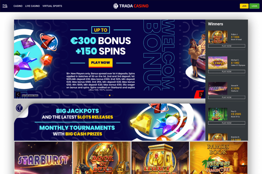 Mit dem großzügigen Bonus von bis zu 300€ und 150 Freispielen können Sie Ihre Reise im Trada Casino beginnen.